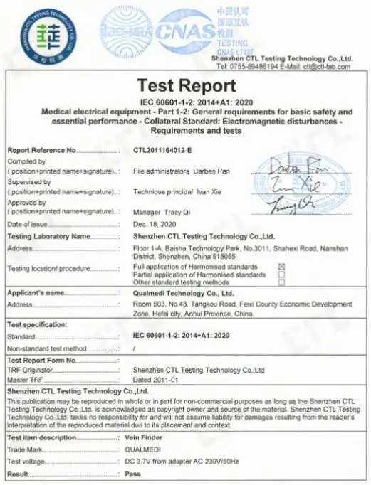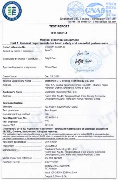 QUALMEDI Vein Finder use advanced infrared imaging technology to provide real-time accurate vein digital image on patient’s skin. Help medical staff observe vein structure then evaluate a best puncture position. This will improve the success rate and relieve the patient’s pain of venipuncture.